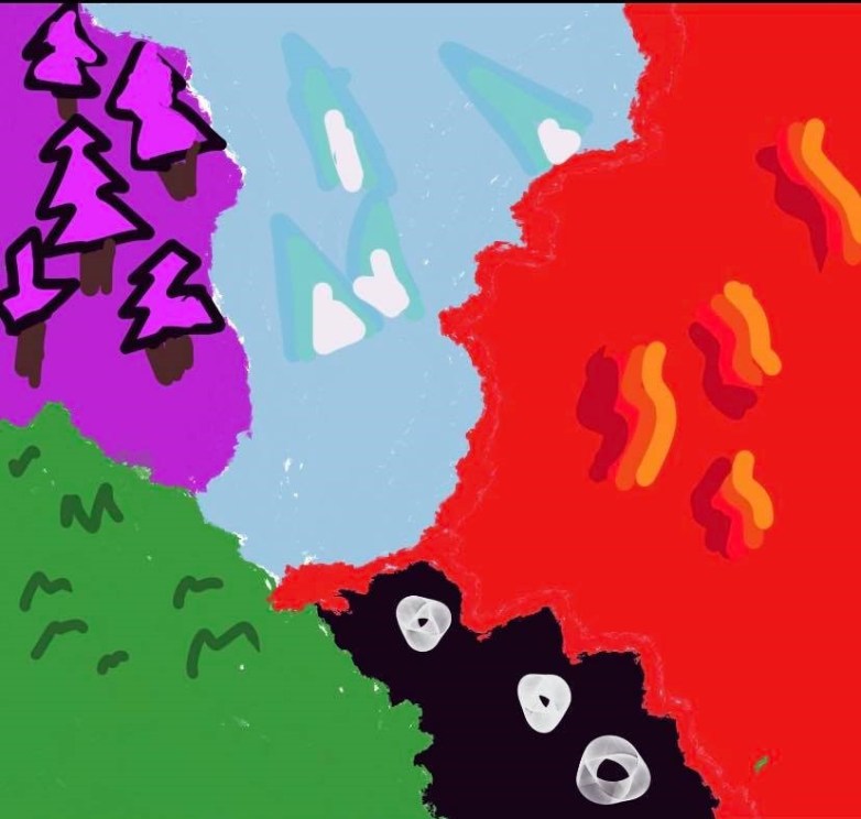 Also drawn by Ayden, here you can see several overlapping elemental and magical realms! He’ll be making lots of art projects as he catches up on Rhyonis; a Realm, a Rift!
